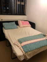 Zwarte slaapbank voor twee personen. bank en bed zijn heel comfotable. er is wel een vlek op de matr ...