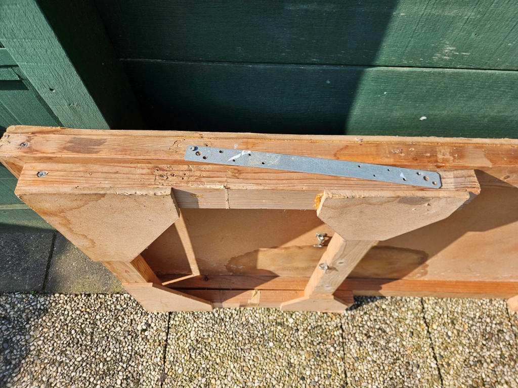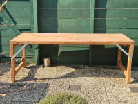Degelijke, functionele uitklapbare tafel met metalen inklapbeugels voor extra stevigheid. Ideaal als extra tafel bij feestjes, barbecues, in de schuur of hobbyruimte.