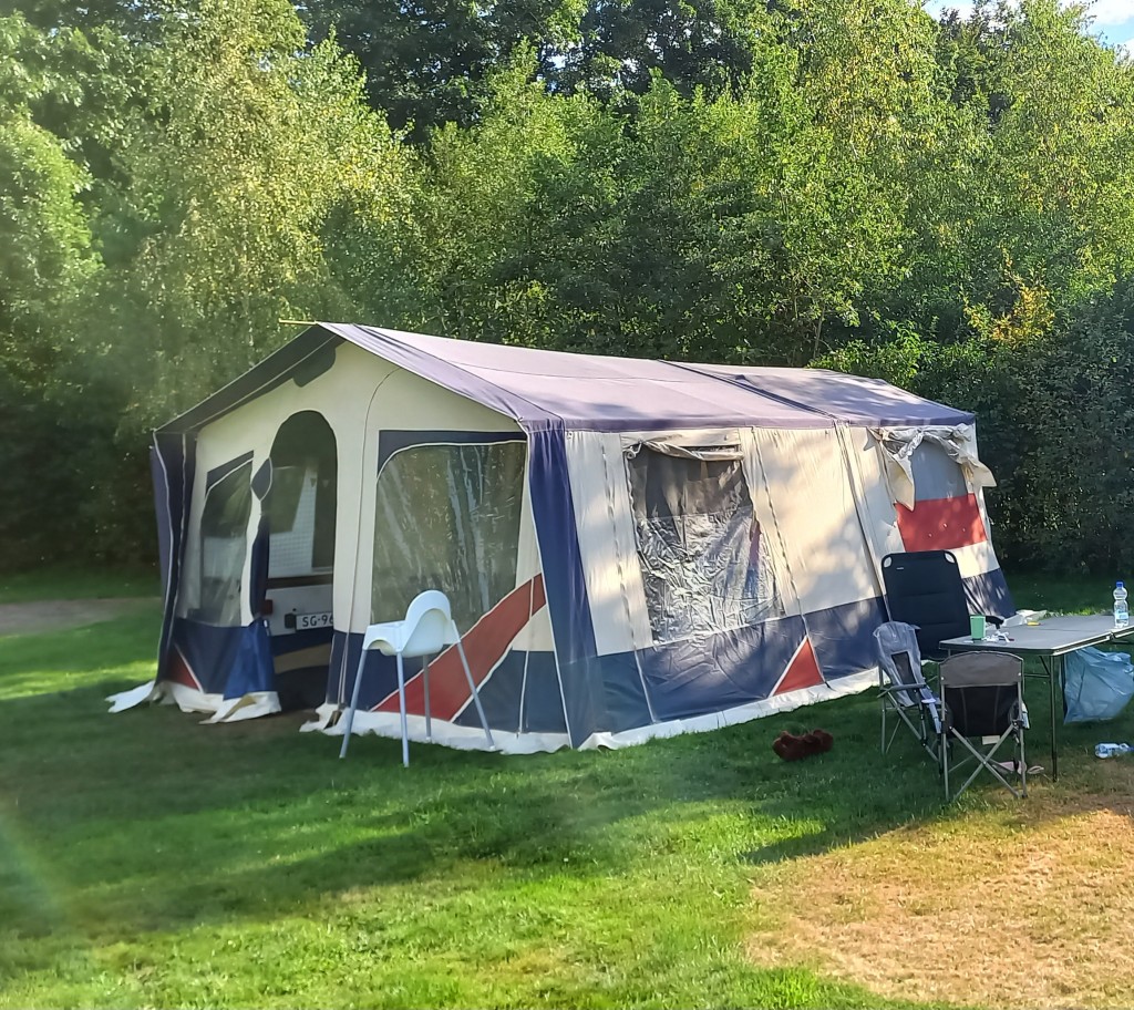 - kan tot 6 personen (4 op de bedden en 2 ondertentjes)