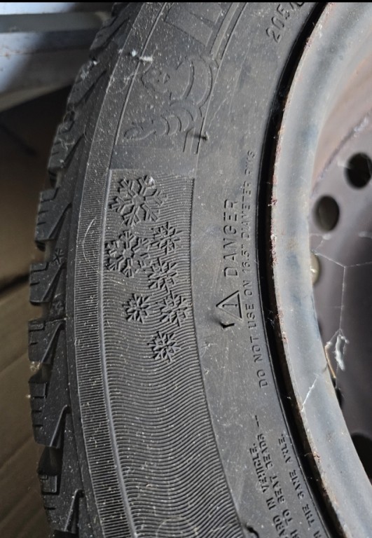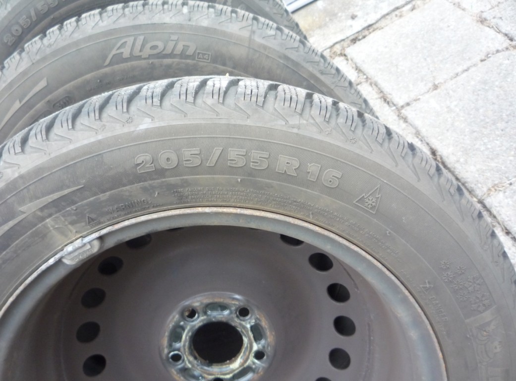 Set van vier Michelin winterbanden Tubeless 205/55 R16 op stalen velgen, eerder onder Ford Focus Wagon 1.6 TDCI. Met vier bijpassende Ford wieldoppen. Ca 6 mm profiel. Aantal jaren niet gebruikt.