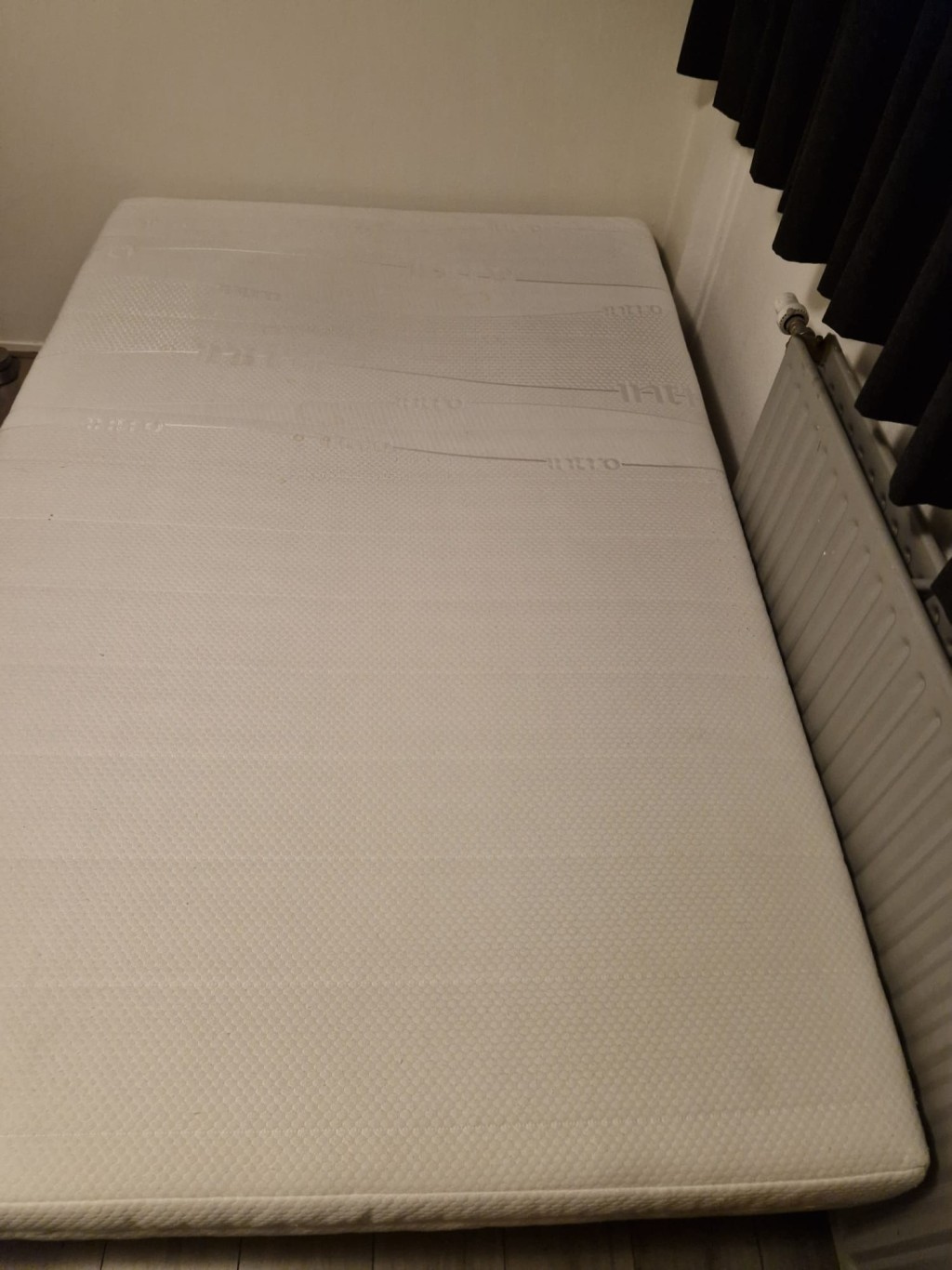 Bed en matras in goede staat. Twijfelaar van 140 cm bij 210 cm.