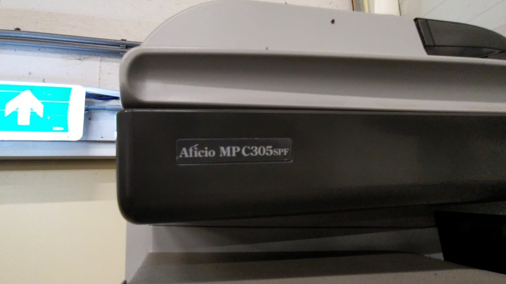 Een Ricoh printer AFICIO MP C305 SPF met enige beschadiging ik weet niet of hij functioneert.