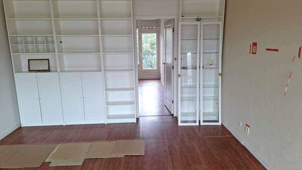 1 x 80 x 200 cm met twee vitrine deuren en verlichting. de kast heeft meerdere glazen planken.